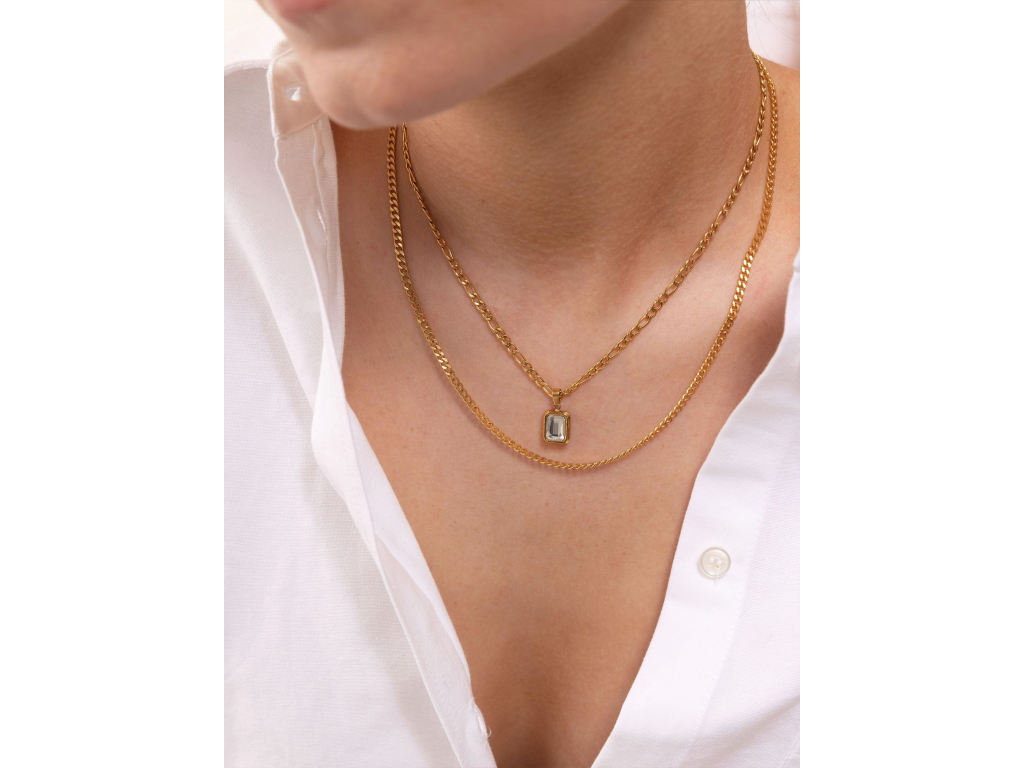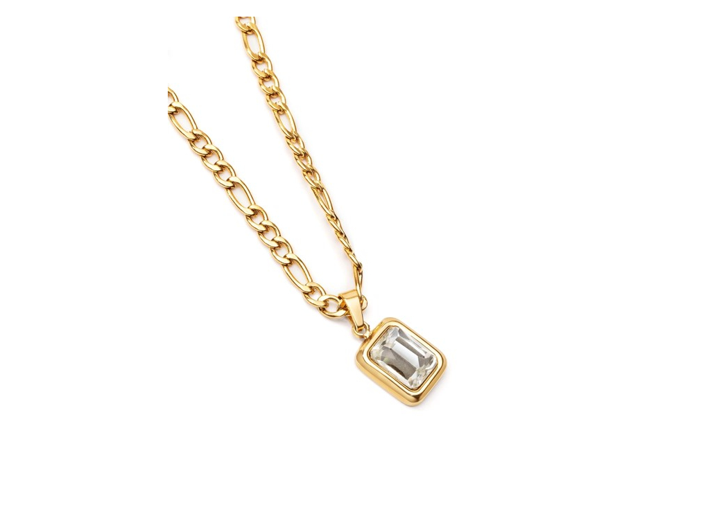 Exkluzivní kolekce náhrdelníků z dílny Nialaya Jewelry přináší skutečný skvost pro milovníky výjimečnosti, minimalismu a luxusu. Nialaya vytvořila velmi propracovaný design elegantního vzhledu tohoto modelu s výrazným čirým krystalem. Náhrdelník je vyroben z nejkvalitnější švédské ušlechtilé oceli, pozlacené 18k zlatem a doplněné průzračným krystalem.