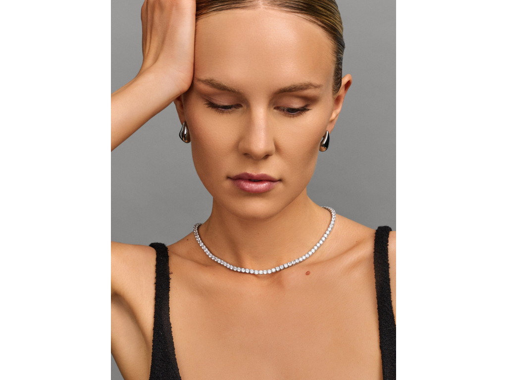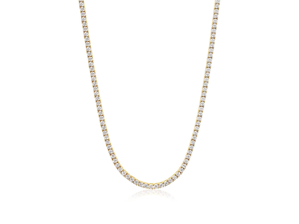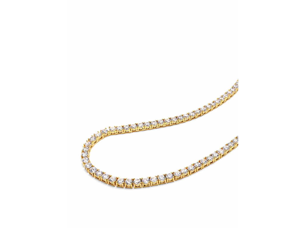 Klasika s lehkým nádechem dravosti. Tento tenisový náhrdelník spojuje nadčasový lesk s odolnou konstrukcí — je vyroben z vysoce kvalitní švédské nerezové oceli, pozlacen je 18K zlatem a osazený precizně broušenými cz diamanty - kameny s briliantovým výbrusem. Výrazný jako solitér, ale zároveň dostatečně univerzální pro vrstvení s jakýmkoli šperkem. Délka je 40,5 cm.