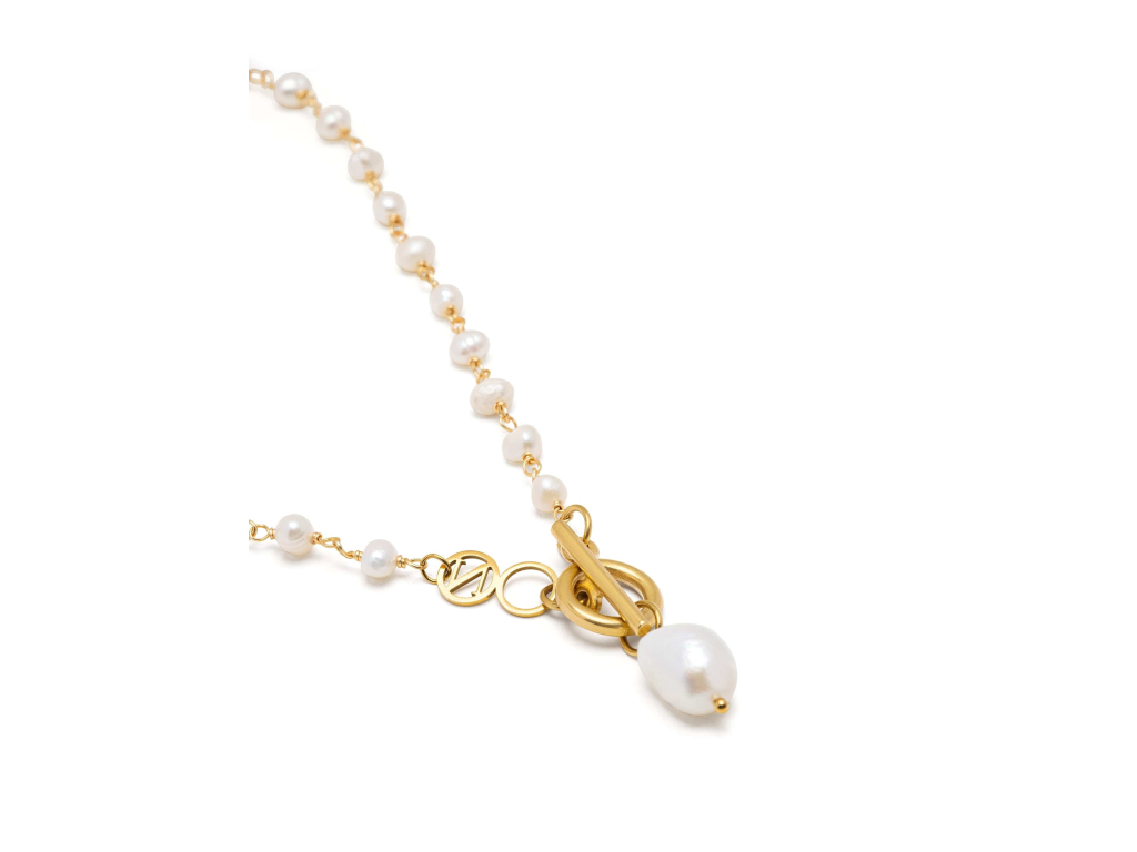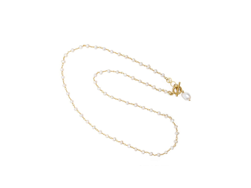 Tento náhrdelník je vyroben z lesklých perel a doplněn ušlechtilou ocelí, pozlacenou 18K zlatem. Nabízí nekonečné možnosti stylizace. Jeho všestrannost nezná mezí, ať už jej nosíte jako jeden dlouhý pramen, omotaný pro vrstvený vzhled, nebo dokonce jako náramek. Dámský perlový náhrdelník je ideální pro dodání nádechu sofistikovanosti ležérnímu i formálnímu oblečení a je nezbytným doplňkem každé sbírky šperků.
