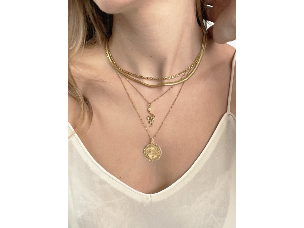 Vysoce módní dámský hadí náhrdelník NIALAYA je složený z kvalitní švédské ušlechtilé oceli a pozlacený 18K zlatem. Noste ho samostatně nebo vrstvěte s jinými minimalistickými náhrdelníky Nialaya. Had je jedním z nejuniverzálnějších a nejstarších symbolů, je symbolem pradávné životní síly a boží soběstačnost a představuje nejvnitřnější proces při zrození světa i člověka.