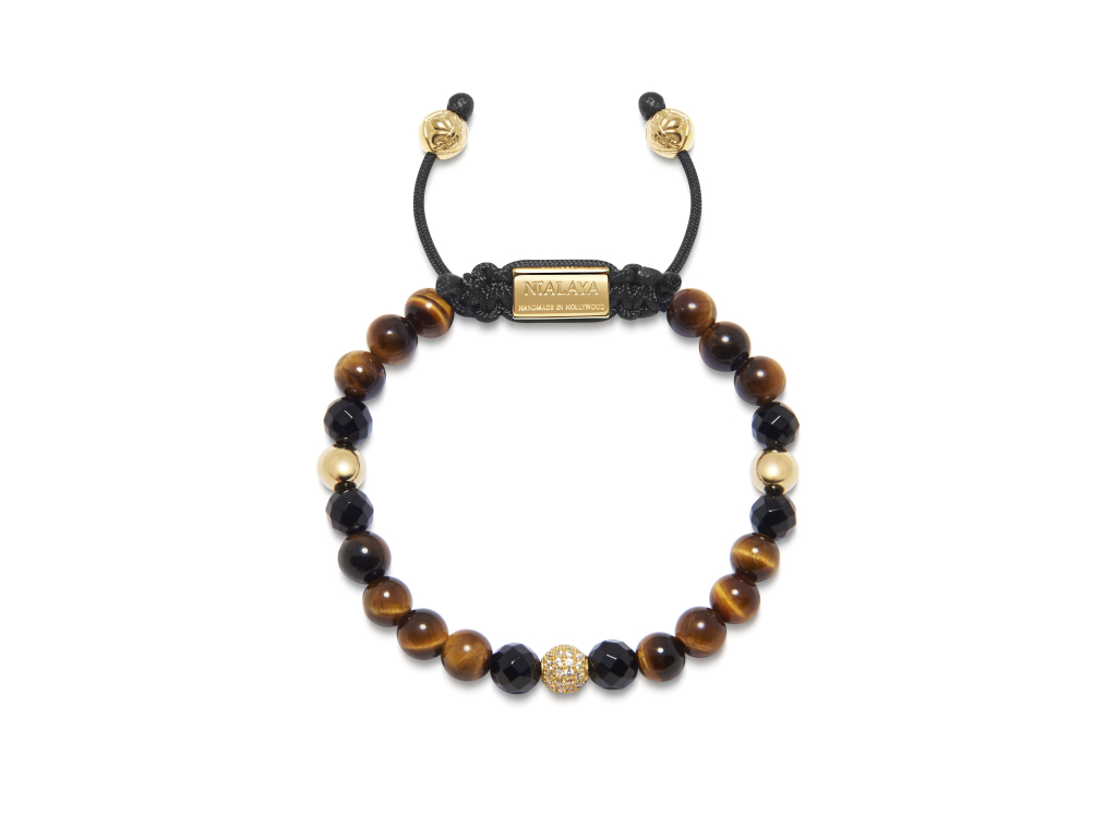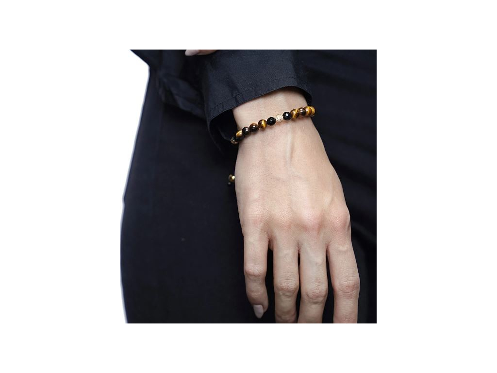 | Materiál | 18K pozlacení, Achát černý, CZ Diamanty, Tygří oko hnědé, Ušlechtilá ocel |