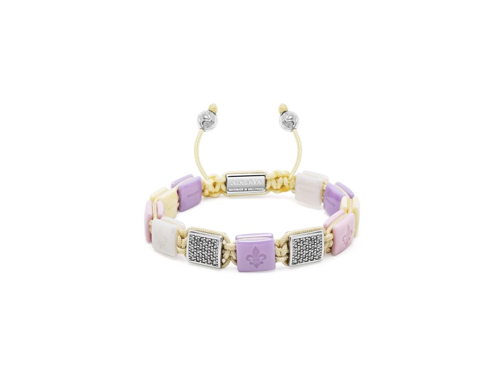 Pozvedněte svůj styl s ručně pleteným náramkem Flat Bead o velikosti 10 mm od Nialaya. Tento šperk je vytvořen z nádherné kombinace bílých, krémových, levandulových a světle růžových keramických korálků doplněných stříbrným korálkem s kubickou zirkonií a vyzařuje ženskou eleganci a nenápadný luxus. Korálky o velikosti 10 mm zaujmou na první pohled a dělají z náramku výrazný doplněk pro každou příležitost.