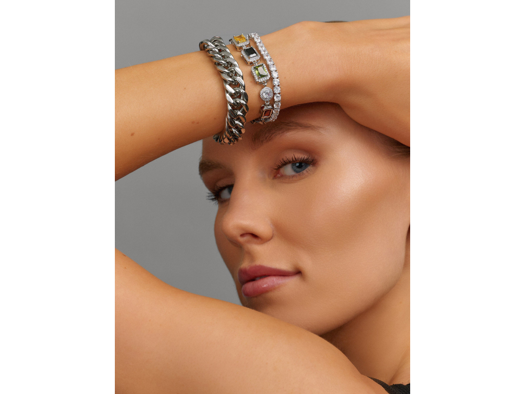 Vyrobený na pevné mosazné kostře a zakončený vysokolesklou vrstvou stříbra 925, nabízí brilanci pravého stříbra s pohodlným nošením. Světlo zachycující akcenty z kubické zirkonie dodávají jemný třpyt, zatímco hladké propojené články vytvářejí plynulý a ženský tvar kolem zápěstí. Náramek je zajištěn naším charakteristickým zapínáním Nialaya a má povrchovou úpravu odolnou proti poškrábání, což přináší do vašeho každodenního stylu jemnou eleganci.