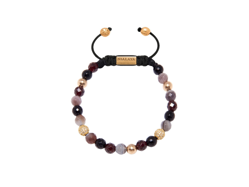 | Materiál | 18K pozlacení, Achát botswanský, Achát černý, CZ Diamanty, Granát, Ušlechtilá ocel |