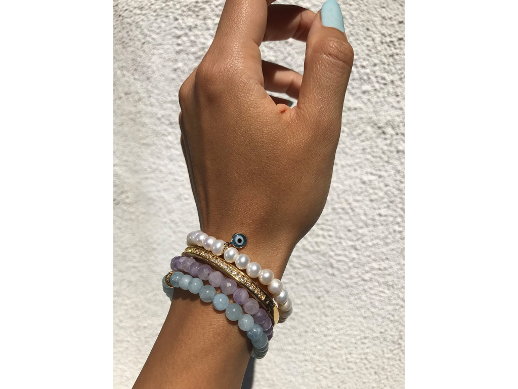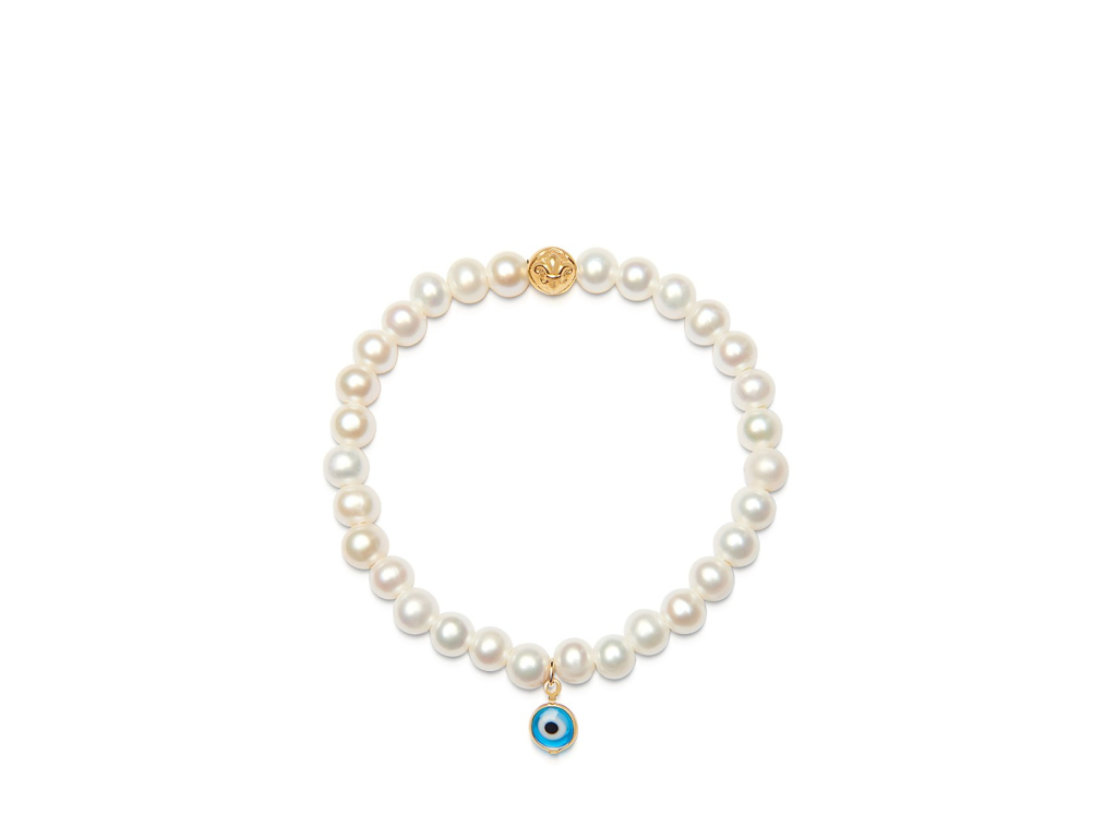 Neodolatelná linie romantických pravých mořských perel ve sněhově bílé barvě je určena pro všechny čisté duše. Výrazný talisman "Nazar" je ochranné oko, které ochraňuje jeho nositelku před zlými úmysly okolí a prohlédne skrz nekalostmi. Přívěsek ochranného oka je vyroben z vysoce kvalitní švédské oceli pozlacené 18K zlatem. Obsahuje pružné a velmi kvalitní silikonové vlákno.