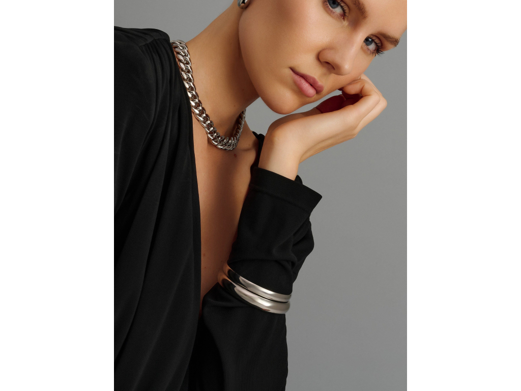 Vylepšená jednoduchost se snoubí s každodenní odolností. Tento klasický kulatý náramek o šířce 12 mm má elegantní stříbrný povrch z vysoce kvalitní odolné nerezové oceli – bez nutnosti dalšího pokovování. Díky univerzální velikosti a snadnému nasazení je ideálním doplňkem pro milovníky minimalismu i výrazných šperků. Odvážný základní kousek, který je stvořený tak, aby vydržel.