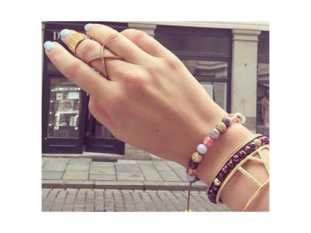 | Materiál | 18K pozlacení, Achát modrý, CZ Diamanty, Růženín, Ušlechtilá ocel |