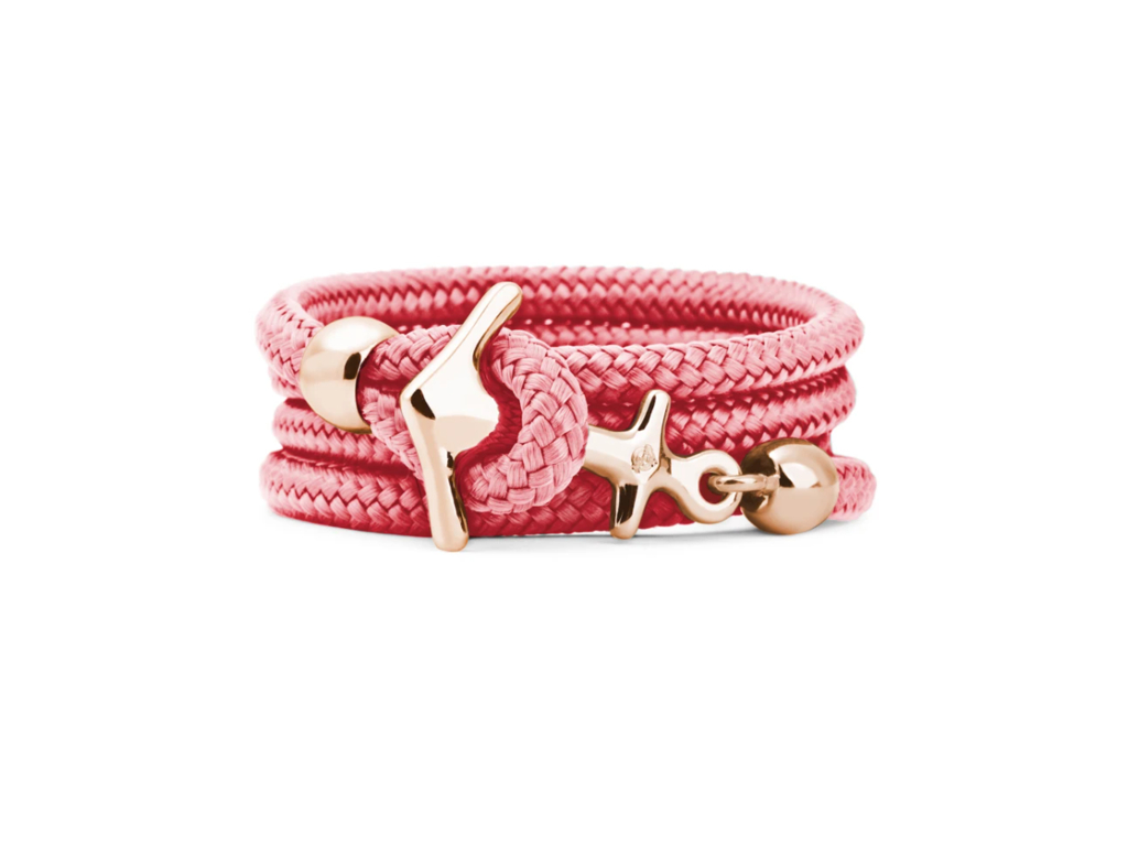Německá značka OCEAN STORY vytvořila kolekci luxusních jachtařských šperků, které se vyznačují exkluzivitou a jedinečným zpracováním. Tento náramek v barvě Flamingo pink vystihuje obrázek karibské pláže s plaměňáky na ostrově Aruba  a budí opravdu dokonalý dojem na opálené pokožce. Speciálně vázané námořnické lano je obmotáno kolem zápěstí a uchyceno kotvou, která  působí jako spona. Masivní kotva je vyrobena ze sterlingového stříbra 925/1000 a je pozlacena 18k zlatem. Speciální námořnické lanko je měnitelné a je možné jej zaměnit za další lákavé barvy z palety Ocean Story.