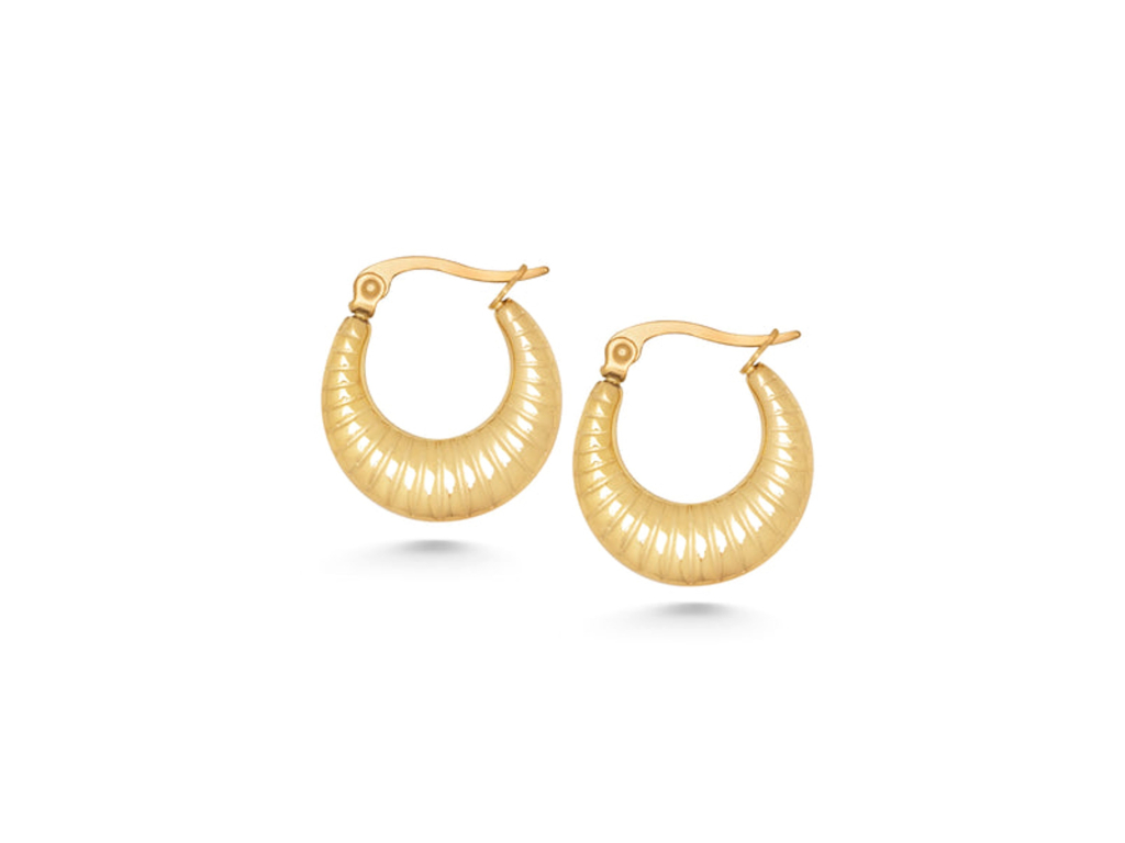 Exkluzivní dámské náušnice, které nesmí chybět ve šperkovnici každé ženy. Tyto klasické náušnice ve tvaru kopule mají fosilní vzor a jsou perfektním doplňkem na denní nebo příležitostní nošení.  Náušnice jsou vyrobené z vysoce kvalitní švédské ušlechtilé oceli a pozlacené 18K zlatem.