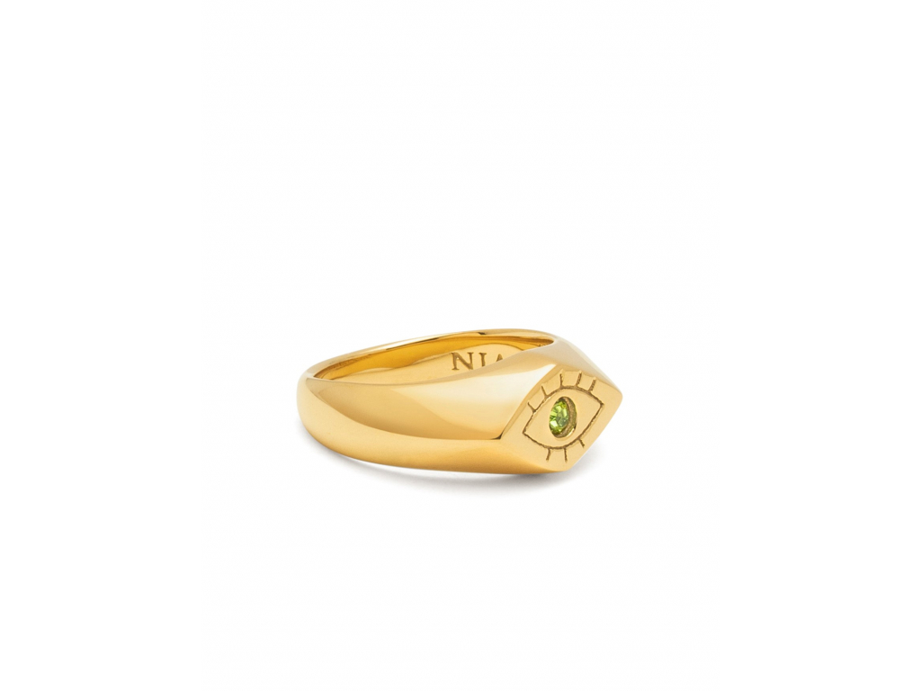 Tajemné "evil eye" oko, ochraňující nositelku proti zlým pomluvám. Módní doplněk pro ženy, které hledají výjimečnost a styl. Prsten je vyrobený z nejkvalitnější švédské ušlechtilé oceli a pozlacený 18K zlatem.