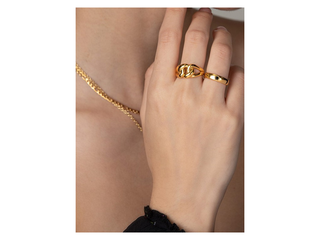 Stylový a velmi oblíbený prsten Nialaya je vyroben z vysoce kvalitní švédské ušlechtilé oceli, pozlacené 18K zlatem. Prsten je vyroben ve tvaru masivního "uzle" a je možné jej kombinovat s ostatními prsteny a vytvořit tak módní look. Prsten je možné nosit na jakémkoliv prstu a vždy bude vypadat naprosto skvěle!