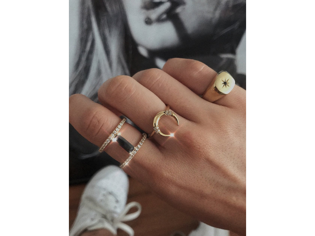 Luxusní a stylový - takový je masivní a zároveň velmi elegantní prsten ozdobený černým CZ diamantem z briliantovým výbrusem a rytinou nehasnoucí a zářící hvězdy "Starburst". Je vytvořený z vysoce kvalitní ušlechtilé oceli a pozlacený 18K zlatem. Ručně zpracovaný prsten v dílně v Los Angeles je určený k nošení na malíčku. Snadno ho však můžete nosit na kterémkoliv jiném prstu a doplnit dalšími unikátními prsteny NIALAYA.