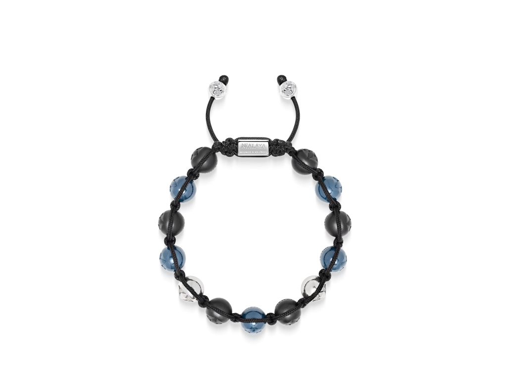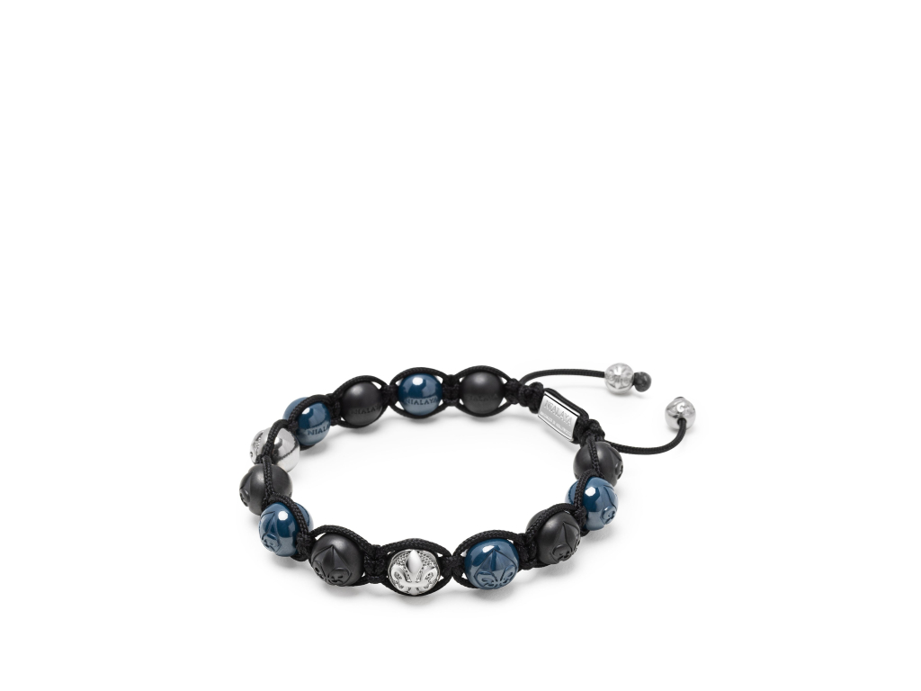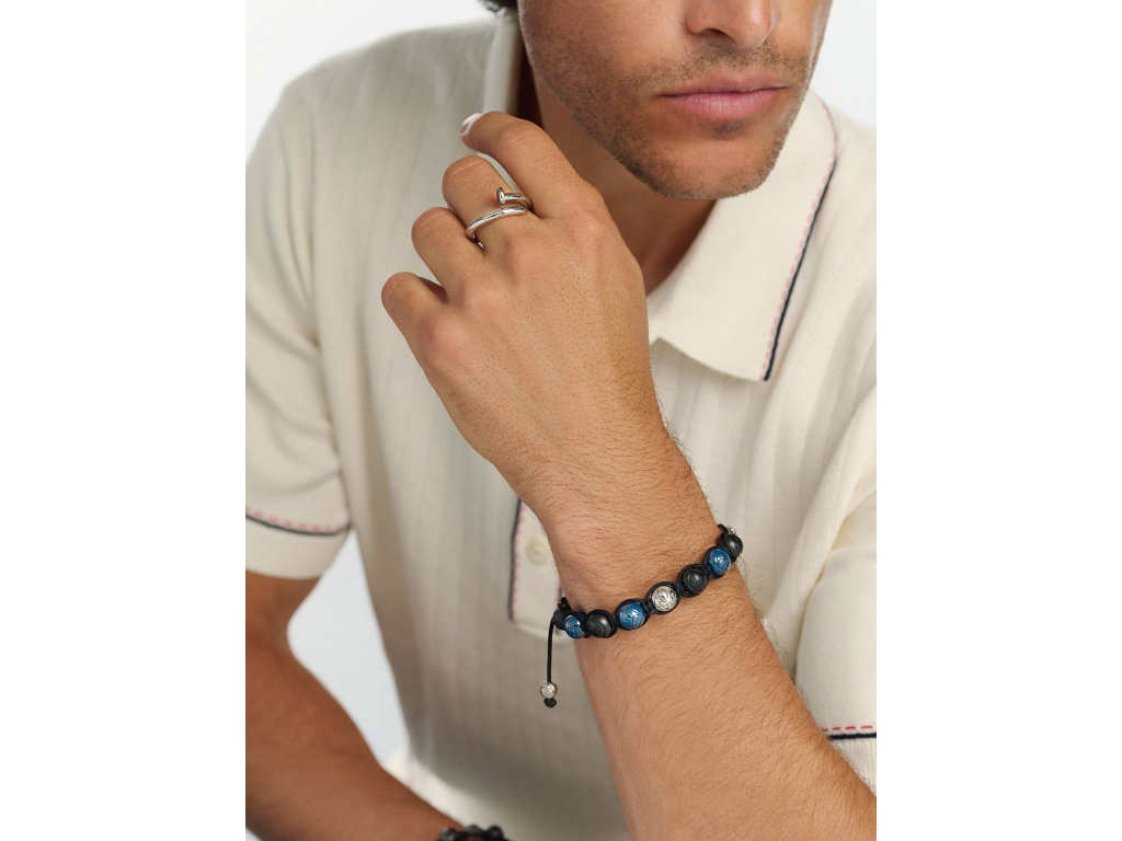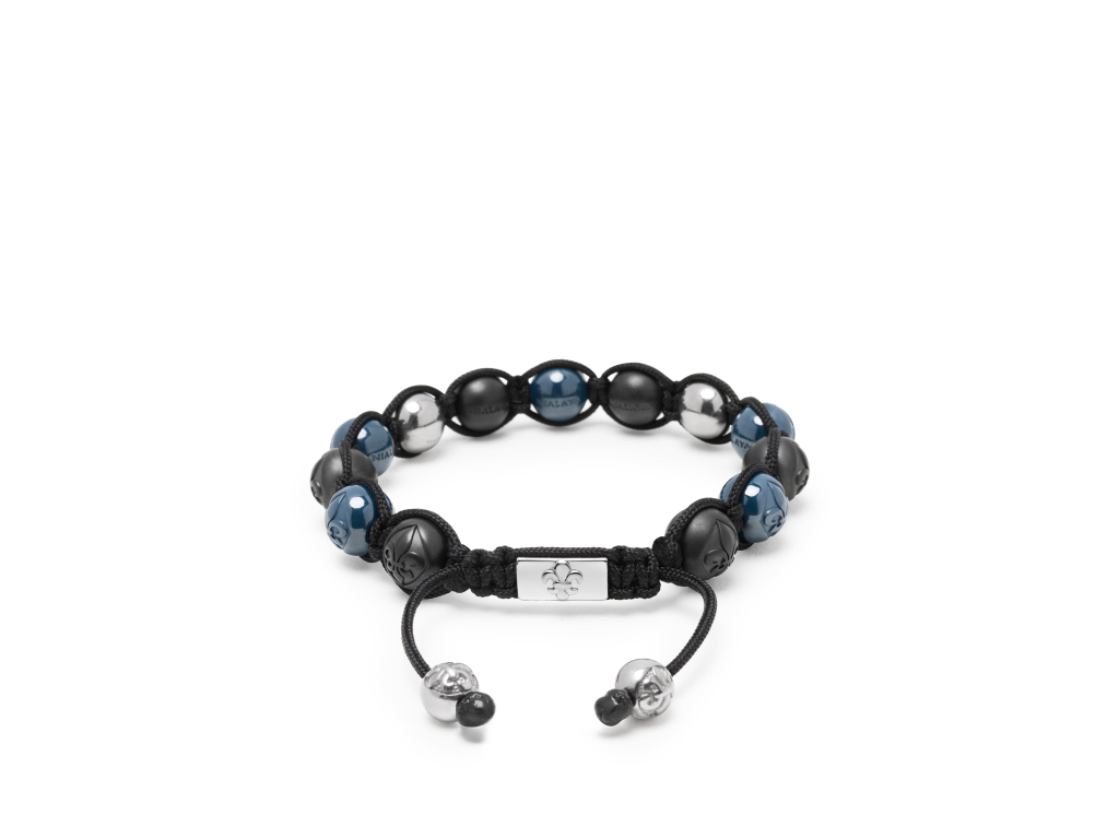 Tento pánský náramek je dokonalou kombinací odvážného a rafinovaného stylu a má matné černé a modré keramické korálky zvýrazněné elegantními stříbrnými kuličkami. Je určen pro muže, kteří si cení moderní elegance s nádechem barev. Šperk nese ikonické logo značky v podobě úchvatné Fleur - de - lis (lilie). Díky ikonickému stahovacímu zakončení má šperk velmi univerzální velikost - je možné jej stáhnout či zvětšit roztažením.