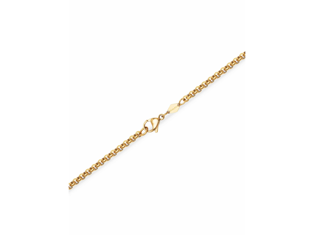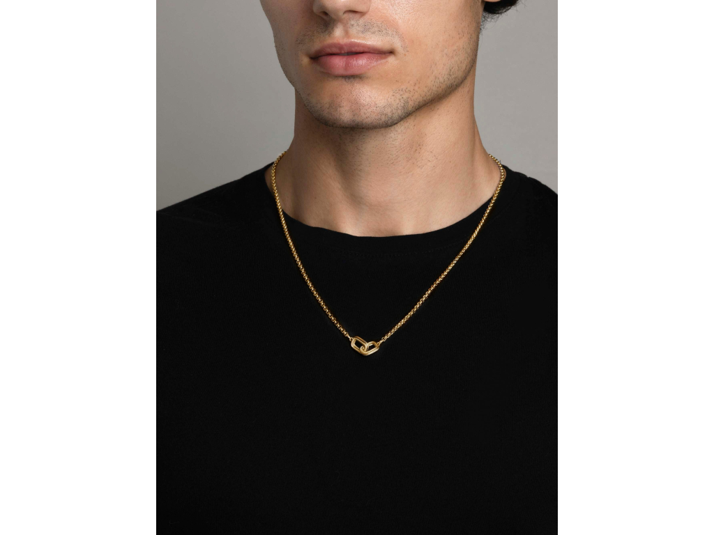 Stylový náhrdelník Nialaya z vysoce kvalitní ušlechtilé oceli, pozlacené 18K zlatem si zamilujete. Náhrdelník je doplněn dvěma propojenými prsteny a nádherně vynikne na Vašem krku samostatně i v kombinaci s dalšími náramky Nialaya.