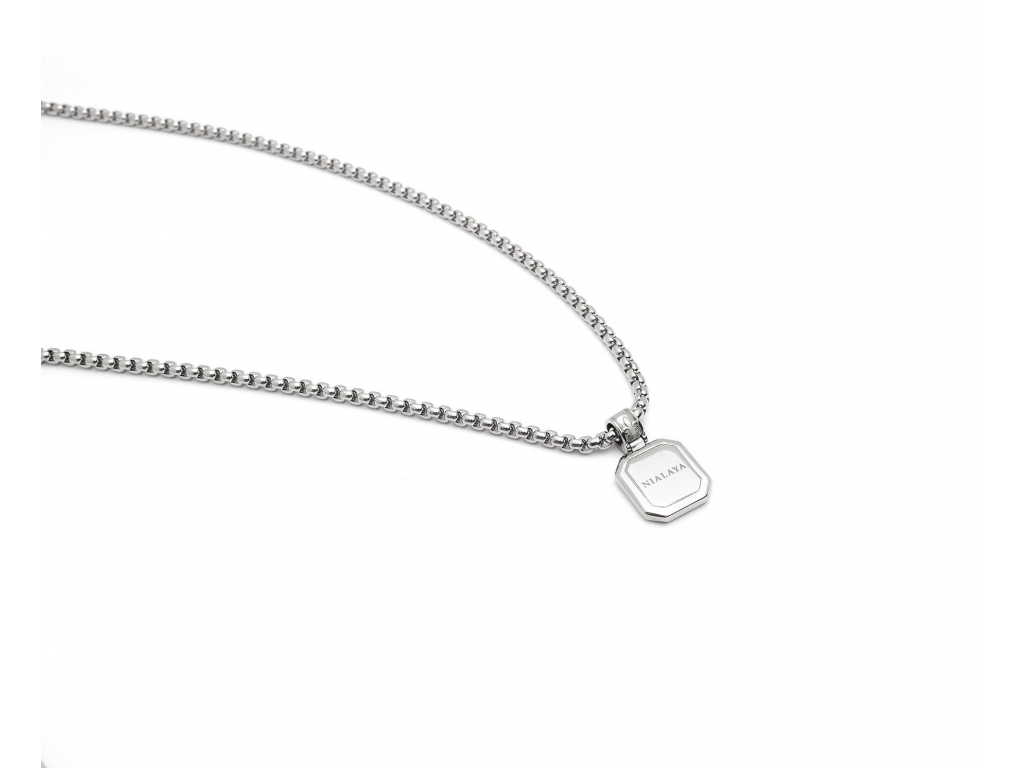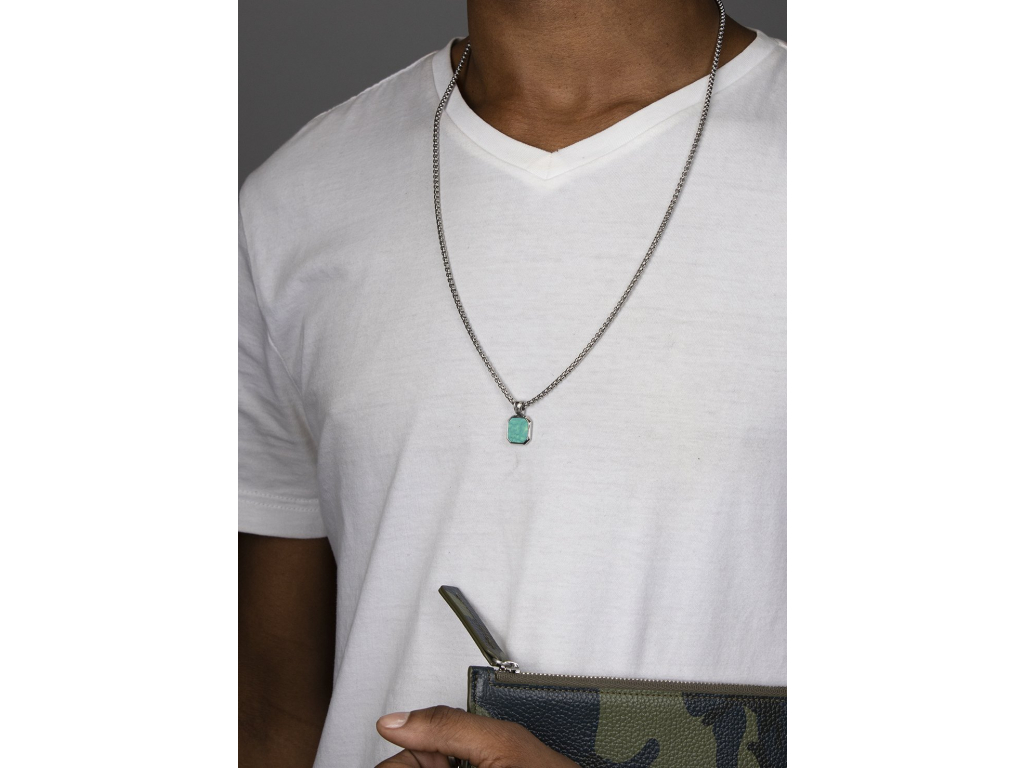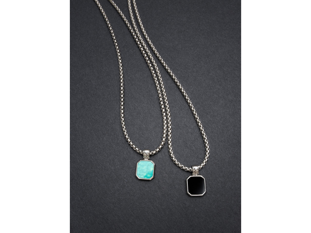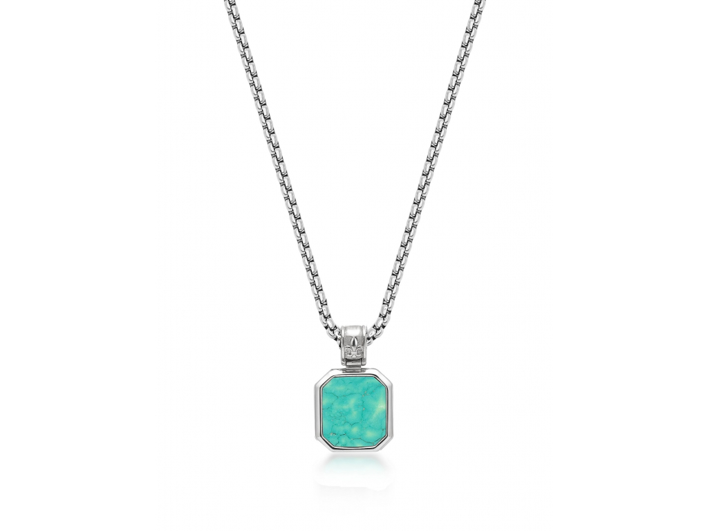 Exkluzivní kolekce pánských náhrdelníků z dílny Nialaya Jewelry přináší skutečný skvost pro milovníky výjimečnosti, minimalismu a luxusu. Nialaya vytvořila velmi propracovaný design elegantního vzhledu tohoto modelu. Masivnější náhrdelník je vyroben z nejkvalitnější švédské ušlechtilé oceli, doplněné nádherným tyrkysem, který vytváří opravdu jedinečný šperk. Obsahuje originální rytiny Nialaya.