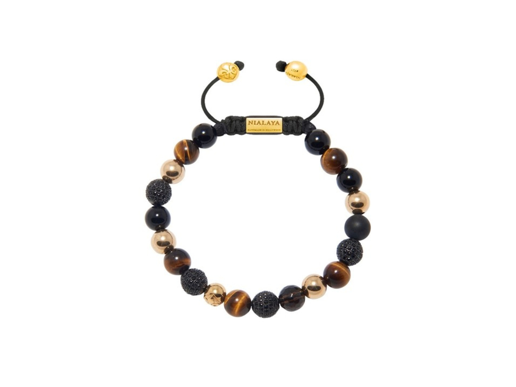 | Materiál | 18K pozlacení, Achát černý, CZ Diamanty, Křemen kouřový, Onyx, Tygří oko hnědé, Ušlechtilá ocel |