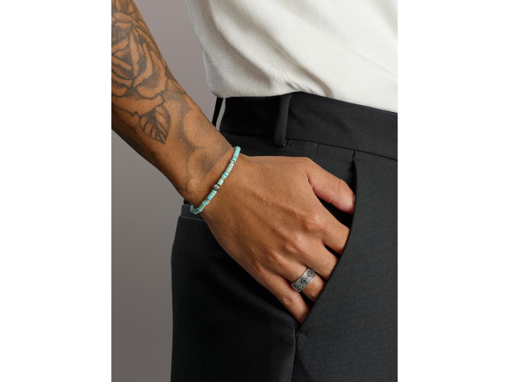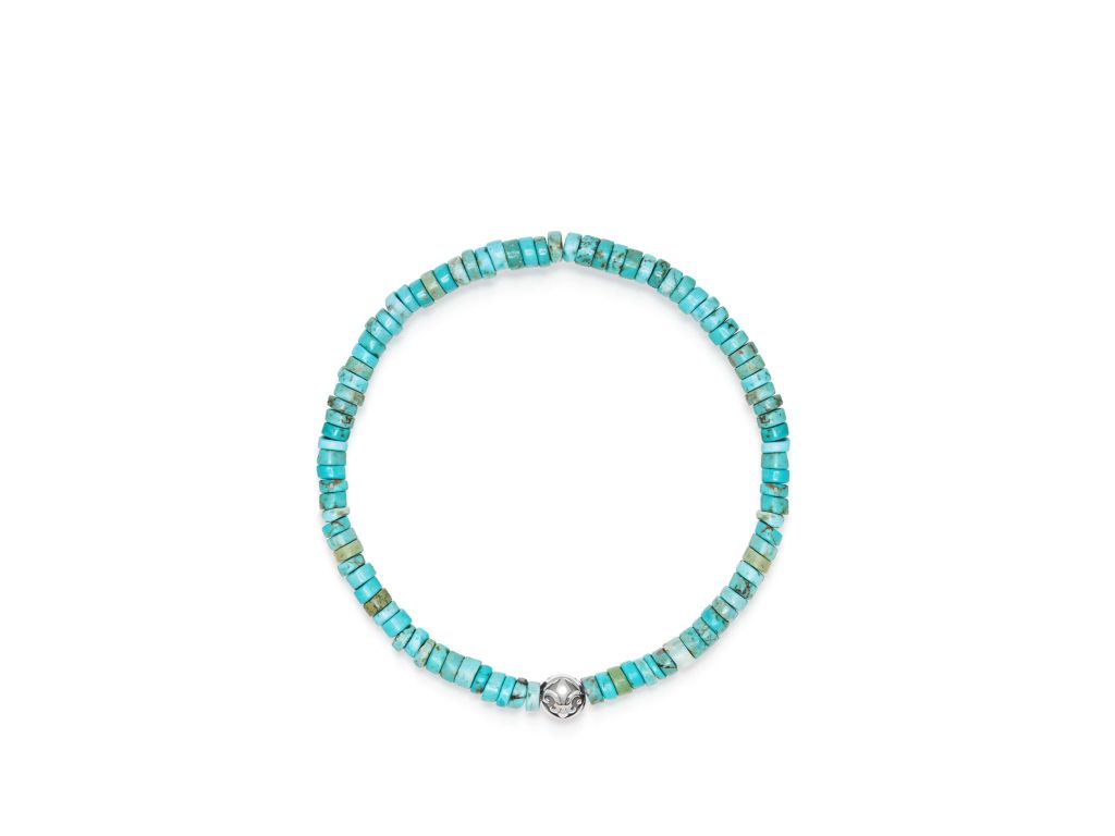 Navržen a ručně navlečen v našem studiu v Los Angeles z krásného tyrkysu — tento šperk je perfektním doplňkem pro každodenní nošení. Zkombinujte ho s více náramky a vytvořte dokonalý bohémský look!