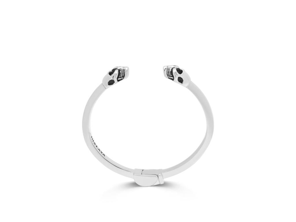 Jeden z nejoblíbenějších skvostů značky Nialaya Jewelry je pevný, masivní náramek s motivem lebky vyjadřující znovuzrození, koloběh života, dominanci a sílu, které jsou od pradávna vlastnostmi bojovníků a vůdců. Tento náramek s lebkou, působí jako výrazný doplněk, který dodá každému oblečení jedinečný styl. Každý náramek je vyroben s pečlivou pozorností k detailu a má precizně navržené hlavy lebek, které obepínají vaše zápěstí a vytvářejí odvážný a dramatický vzhled. Tento masivně působící, ale přesto velmi vkusný, elegantní šperk, je vyroben z vysoce kvalitní ušlechtilé švédské oceli.