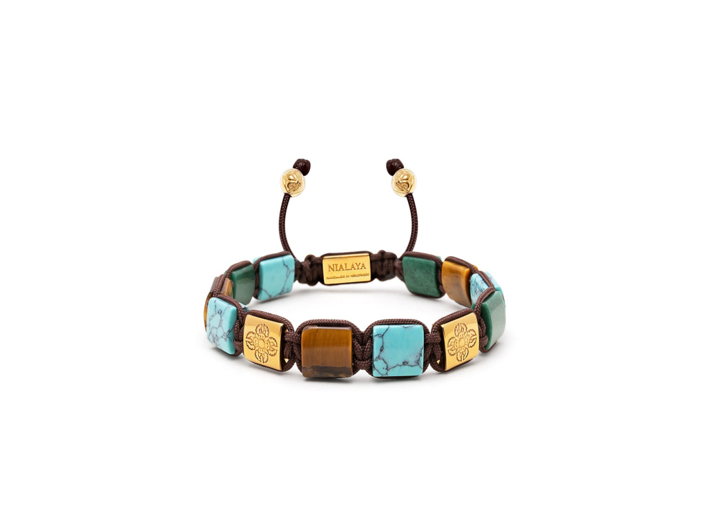 | Materiál | 18K pozlacení, CZ Diamanty, Nefrit zelený africký, Tygří oko hnědé, Tyrkys z Bali, Ušlechtilá ocel |