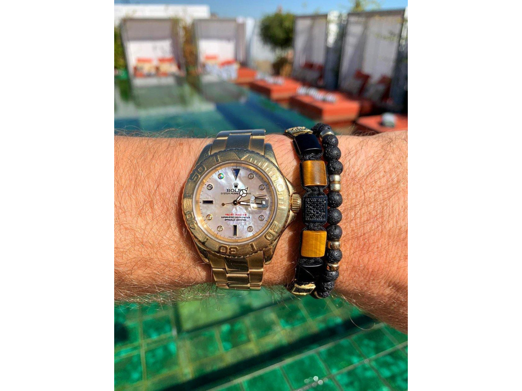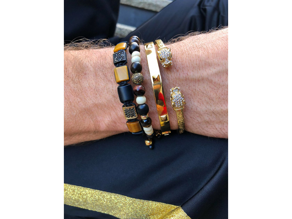 | Materiál | 18K pozlacení, CZ Diamanty, Onyx, Ruthenium, Tygří oko hnědé, Ušlechtilá ocel |